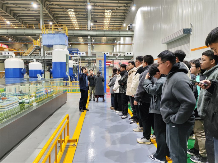 穿过防尘通道进入生产车间,龙门吊正在吊装直径4米的锅炉筒体,激光切割机在钢板上划出精准的曲线。在国家级锅炉实验室,燃烧测试平台的实时热成像画面、流化床动态模拟装置,将课堂上的流体力学公式转化为可视化的工业场景。生态园区内,白领公寓、健身中心与研发大楼构成现代化产城融合图景。座谈会上,公司职工揭晓“双螺旋晋升通道”。