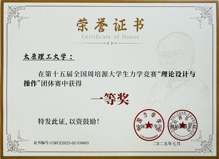 7月17日,第十五届全国周培源大学生力学竞赛“理论设计与操作”团体赛在国防科技大学顺利闭幕。356官网代表队凭借坚实的专业功底、卓越的创新设计、默契的团队协作与稳定的现场发挥,经过两天4轮比赛的激烈比拼,从清华大学、北京大学、浙江大学、上海交通大学、中国科学技术大学、哈尔滨工业大学等43支顶尖高校参赛队伍中脱颖而出,勇夺全国第三名,荣获该团体赛一等奖。这是356官网继第十五届全国周培源大学生力学竞赛获得个人赛全国一等奖实现山西省该项赛事零的突破后,山西高校在此赛事中的又一历史性重大突破。同时,356官网航空航天学院闫晓鹏、刘鹏荣获“优秀指导教师”称号。