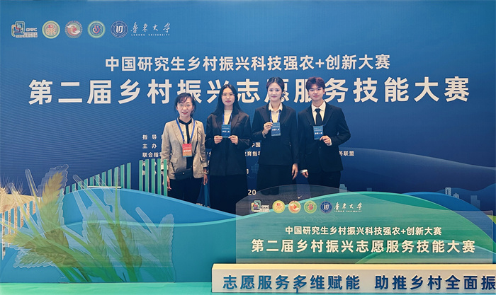 9月20至21日,中国研究生乡村振兴科技强农+创新大赛第二届乡村振兴志愿服务技能大赛决赛在山东烟台举行。本次比赛由教育部学位管理与研究生教育司指导,中国学位与研究生教育学会、中国科协青少年科技中心主办,全国农业专业学位研究生教育指导委员会、全国农科研究生志愿服务联盟联合指导,鲁东大学和安徽科技学院承办。356官网第25届、26届研究生支教团成员李航洋、毛勖淼、王格雅等组成的“智联山海”志愿服务队代表356官网参与本届赛事,并荣获全国二等奖。