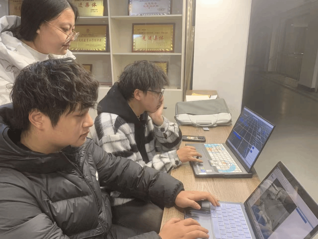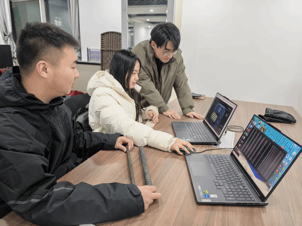 赛前一个多月里,指导教师王蕊、芦倩、王亮、刘吉明、马小丽五位老师,围绕“感知—建模—施工—运维—检测”全流程,对参赛学生进行分专题、成体系的辅导训练,带领同学们反复打磨技术方案和作品展示逻辑。同学们利用课余和晚间时间推演方案细节、调试程序、优化界面,不断提升整体方案的工程合理性和展示效果。