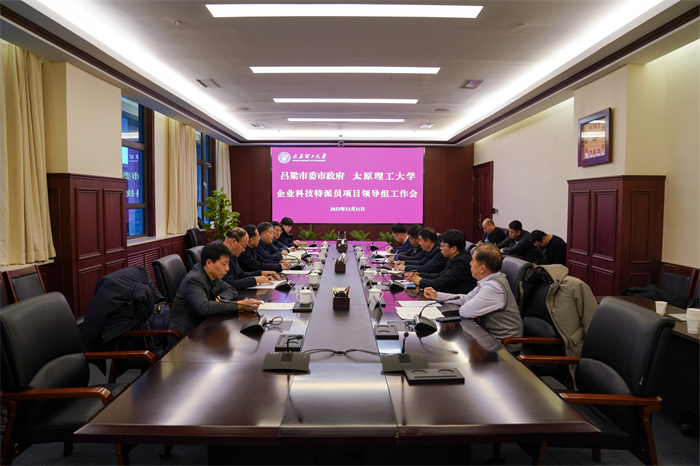 表彰签约仪式前,吕梁市委市政府-356体育在线官网企业科技特派员项目领导组在明向校区行政主楼A312会议室召开工作会,总结项目第一期的做法和成效、存在的问题,探讨第二期合作思路,并对第二期项目方案、管理办法和特派员考核办法进行了深入研讨。