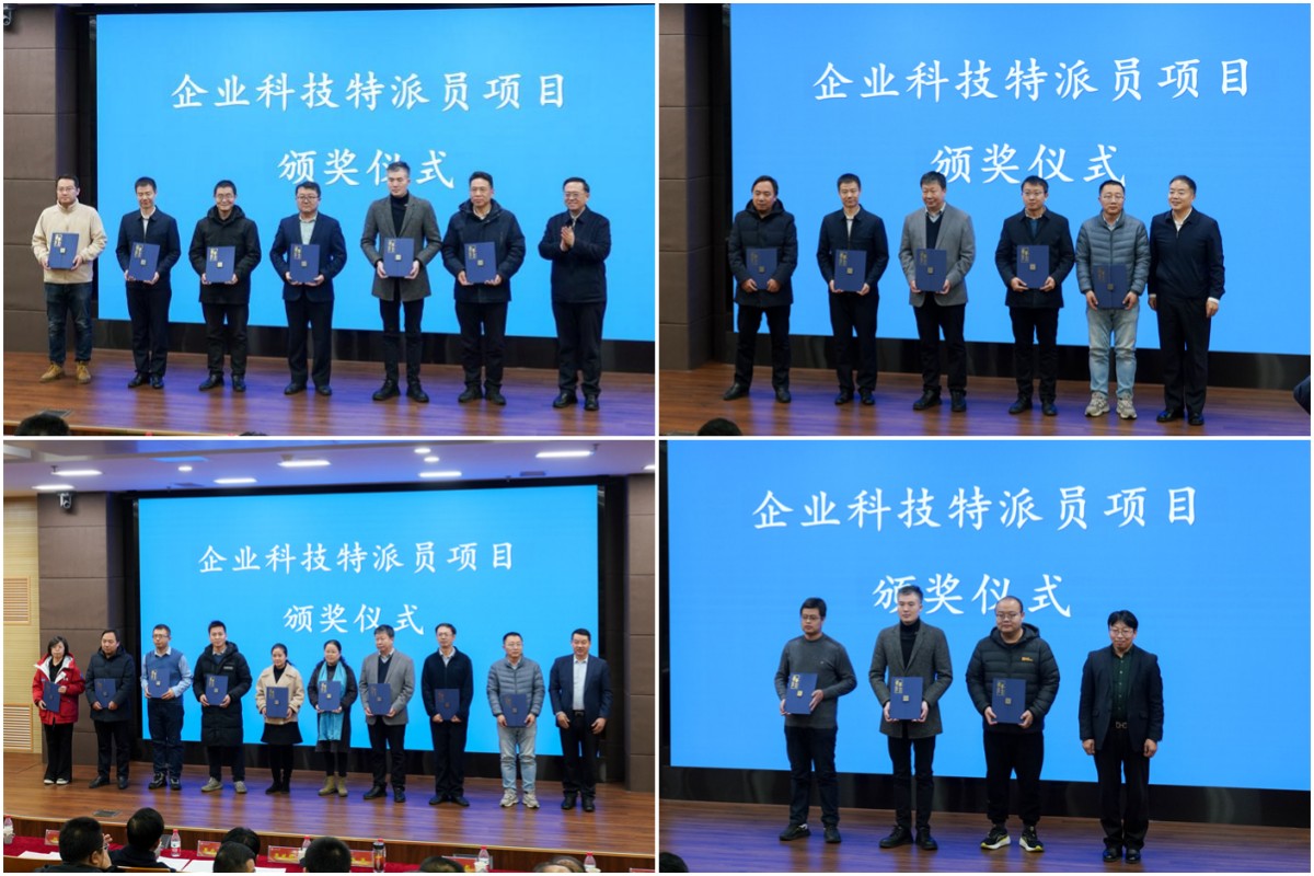 吕梁市委组织部负责人宣读第一期特派员项目表彰名单,授予7名同志“金牌企业科技特派员”、10名同志“优秀企业科技特派员”、5名同志“金牌组长”、10名同志“优秀管理工作者”荣誉称号。校地双方领导为获奖代表颁发获奖证书。