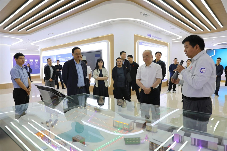 在能源互联网成果展厅,研究院有关负责人系统阐释了能源互联网的战略定位与核心价值,重点汇报了研究院在人才引育、平台搭建、技术攻关等方面取得的突破性成果。陈磊详细询问了研究院在极地清洁能源系统、能源监测与传感装置、新型储能装置等创新技术的研发进展。在技术研究与转化中心,设备安全智能防护团队技术负责人现场演示了面向新型电力系统的数智巡检系统及可靠人机协作机器人装置。随后,调研组还观看了研究院技术负责人对阳泉数智双碳平台、朔州机场智慧能源管理系统等在山西落地应用的示范项目演示,并听取了研究院一线工作人员从南极秦岭站发回的南极科考站清洁能源系统建设运行实况。