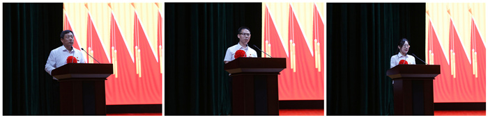 与会校领导为“党员先锋岗”和“文明科室”授牌。武装部军事教研室教师骞大军、校长办公室文秘科科长袁国政、党委学工部思想政治教育科科长陈冬华分别作为“党员先锋岗”代表和“文明科室”代表作了表态发言,分享了工作中的付出与收获,表示将不忘初心、继续奋斗,矢志不渝加强学习,不断增强“四个意识”、坚定“四个自信”、坚决做到“两个维护”,将荣誉转化为奋进力量,在创建“五型机关”的实践中走在前、做表率,为建设综合性、研究型、高水平一流大学不懈奋斗。