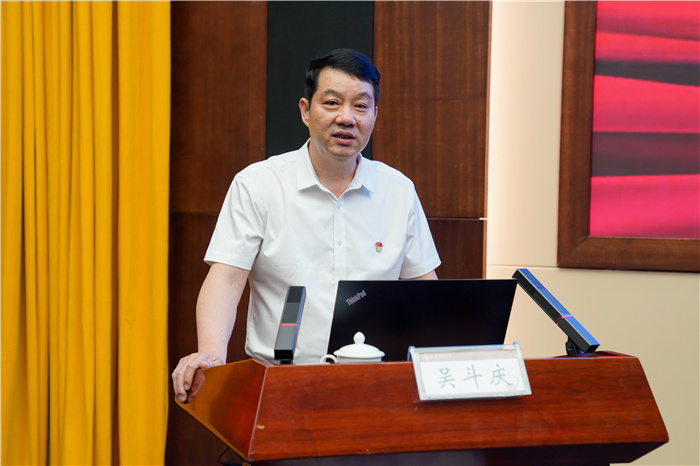 “科技是第一生产力,人才是第一资源,创新是第一动力。”开讲伊始,吴斗庆带领师生深入学习党的二十大报告中关于教育、科技、人才工作的重要论述,以“钱学森之问”和“李约瑟之问”引出教育、科技、人才“三位一体”融合发展的内在联系,启迪师生要从整体发展上了解各个领域对教育、科技、人才的需求,从更高的站位和视角认识教育、科技、人才对国家战略发展的重要支撑作用。