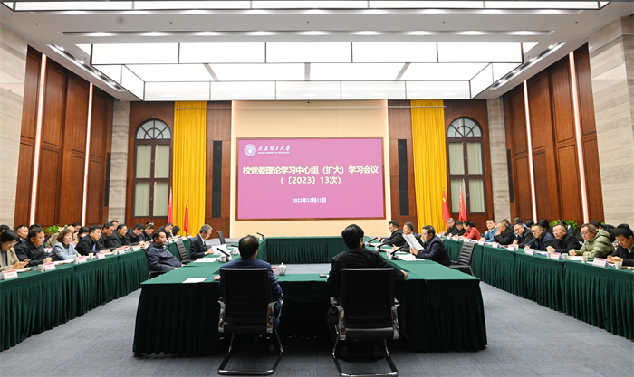 12月12日下午,校党委在明向校区行政楼鹏飞会堂召开理论学习中心组(扩大)学习会议,专题学习习近平总书记关于安全生产的重要论述,并进行研讨交流。校党委书记郑强主持会议,校党委理论学习中心组成员、党政职能部门负责人、基层党委(直属党总支)书记参加会议。