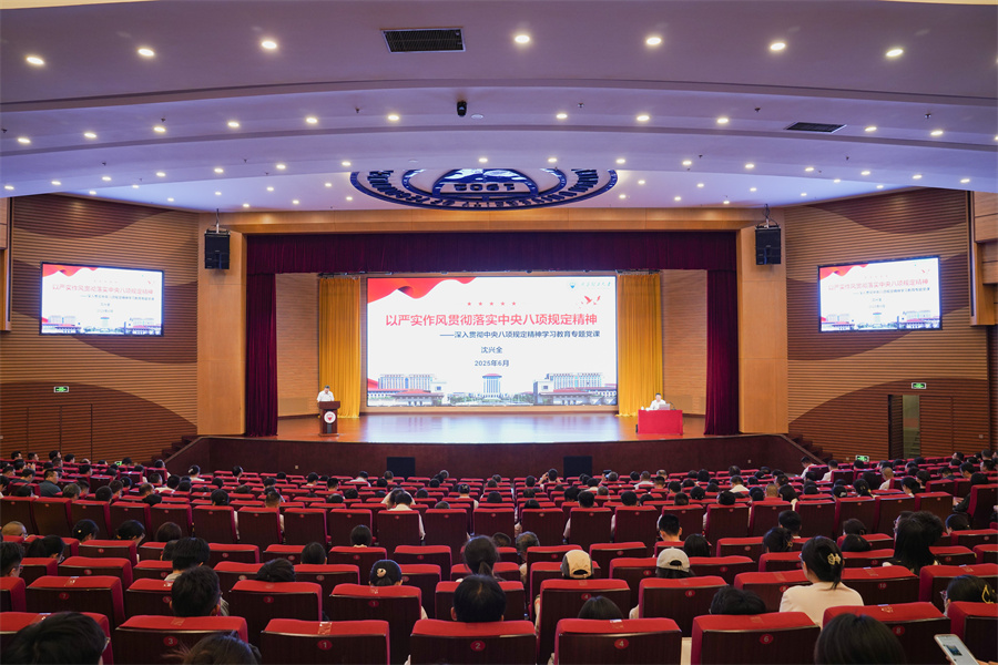 为深入贯彻中央八项规定精神学习教育要求,持续深化作风建设,推动贯彻落实中央八项规定精神在校园落地生根,6月30日下午,校党委书记沈兴全在明向校区学生活动中心一层报告厅讲授深入贯彻中央八项规定精神学习教育专题党课。校领导、全校中层干部、机关干部职工、学生党员代表及所联系党支部全体党员参加专题党课。