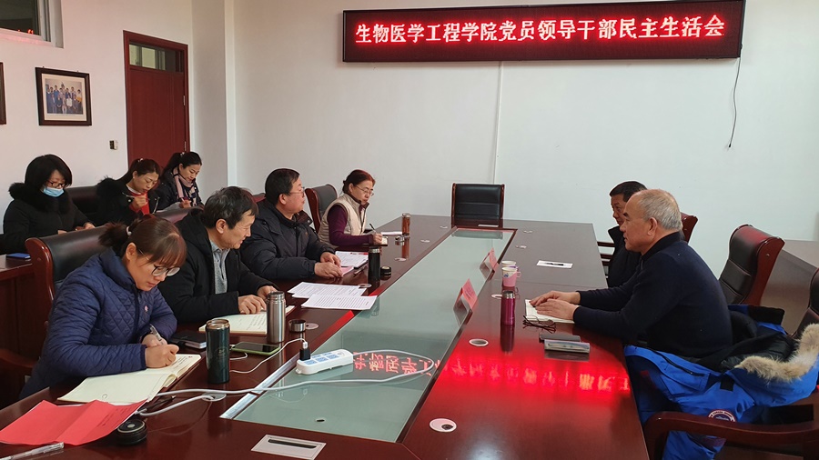 1月6日上午,生物医学工程学院在明向校区办公楼408会议室召开了生物医学工程学院党员领导干部民主生活会,联系校领导刘润祥副书记、校纪委委员杨新生、院领导班子成员、党政办主任、工会主席、教科办主任、学工办主任和团委书记,参加了会议。会议由学院党委书记韩志军主持。