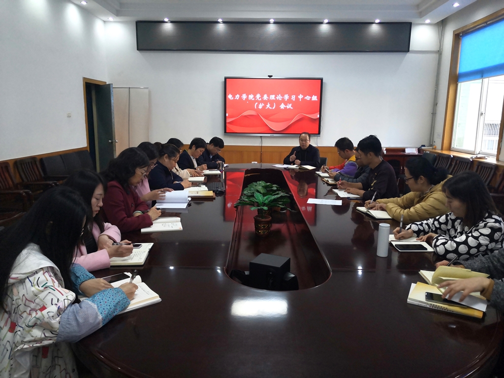 11月10日下午,电气与动力工程学院党委理论学习中心组(扩大)会议在迎西校区电机馆会议室召开。会议专题学习中国共产党第十九届中央委员会第五次全体会议公报、《中共中央关于制定国民经济和社会发展第十四个五年规划和二○三五年远景目标的建议》和习近平总书记关于《建议(讨论稿)》的说明。学院党委书记吉育峰主持会议并讲话,学院党委委员、各党支部书记、三办主任参加了会议。