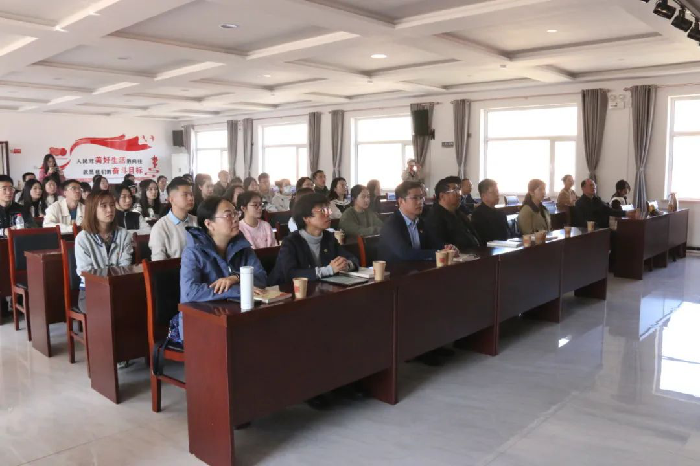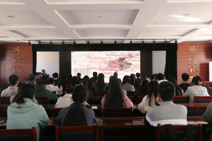 在晋绥文化教育培训中心三楼会议室,古交市委党校阎晓喻老师为马院师生作了题为《战火中的丰碑》的专题报告,重点讲述了晋绥八分区在战争年代作出的突出贡献,阐述了八分区军民在艰苦卓绝的环境中所锻造的对党忠诚、胸怀全局、团结奋斗、担当作为的战斗精神。