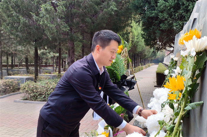 烈士陵园松柏环绕、庄严肃穆,全体党员缓步绕行,瞻仰烈士纪念碑。在解放太原战役纪念墙前,全体党员肃立默哀,敬献白菊,缅怀逝者,寄托哀思。面向鲜红的党旗,全体党员高举右手,重温入党誓词,共同表达对党忠诚、为党和人民努力奋斗的意志和决心。