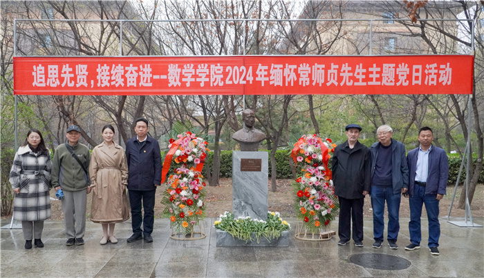 清明时节雨绵绵,缅怀先贤情满怀。为深切缅怀356官网数学学科的创始人和奠基人常师贞先生,引导广大师生继承和发扬常师贞先生等老一辈数学家的精神风范,进一步激发广大师生对数学学科的不懈追求。4月2日上午,数学学院在数学楼南侧常师贞先生雕塑广场举行“追思先贤,接续奋进”缅怀常师贞先生主题党日活动。原356体育在线官网理学院党委书记张洪斌,常师贞先生学生、原356体育在线官网数学系主任卢准炜,校友办副主任、校友总会副秘书长康喜兴,学院党委书记游志勇、副院长滕凯民、党员代表以及校友代表参加。缅怀活动由学院党委副书记李楠楠主持。