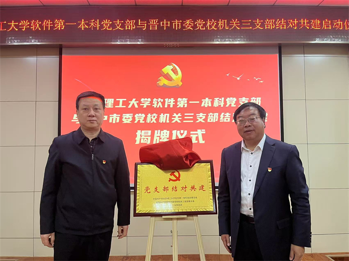 在全场热烈的掌声中,孟玲珑与张文基代表双方进行现场揭牌,标志着合作正式启动。随后,晋中市委党校机关三支部书记李旭辉和356体育在线官网软件第一本科党支部书记王泽代表双方签署共建协议,进一步深化合作共识,为共建工作的顺利开展奠定坚实基础。