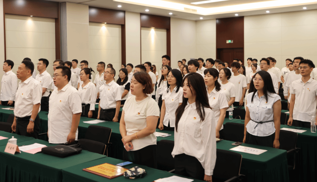 大会在庄严的国歌声中拉开帷幕。全体与会人员肃立,齐声高唱国歌。