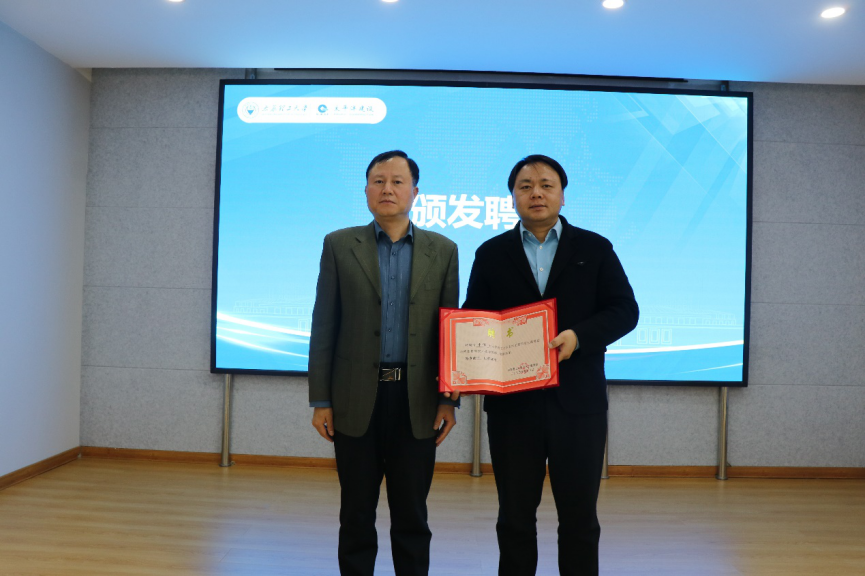 会上董晓强为于伟颁发了“土木工程学院生涯规划与就业指导校外指导教师”的聘任证书。