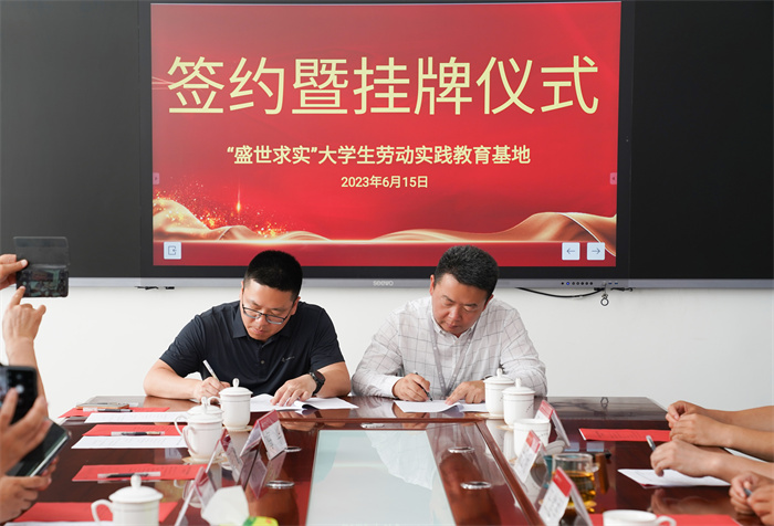 仪式上,双方签署共建协议,并为“大学生劳动教育实践基地”揭牌。此次签约,标志着双方就此建立紧密联系,共同为构建“新时代大学生劳动教育基地”携手共进,为大学生提供优质实践平台。