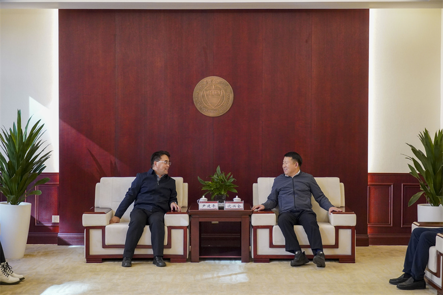 会见中,沈兴全对尹建平一行来校调研表示诚挚欢迎,他回顾了两校在长期发展中形成的深厚友谊与良好合作基础,指出双方在人才培养、科研创新等多个领域有着广阔的合作空间。他强调,希望以此次调研为重要契机,进一步夯实合作基础、拓宽合作领域,实现资源共享、优势互补,共同推动两校事业高质量发展。