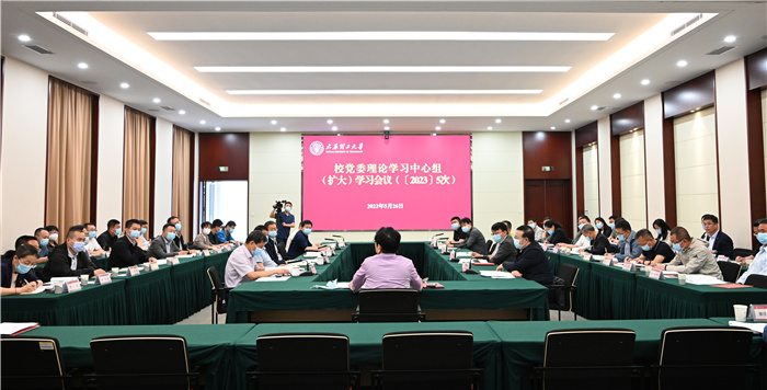 5月26日,校党委在迎西校区会议中心召开理论学习中心组(扩大)学习会议,传达学习了习近平总书记在我省考察重要指示精神和听取陕西省委、省政府工作汇报时重要讲话精神,集中学习了上级文件精神。校党委理论学习中心组成员、校党委委员、党政职能部门负责人、各基层党委(直属党总支)书记等参加会议。校党委书记郑强主持会议。