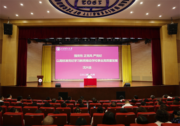 沈兴全聚焦《中国共产党纪律处分条例》,围绕深刻领会开展党纪学习教育的重大意义,结合机关工作实际,强调了机关工作的重要性,并就如何做一名优秀的机关工作人员,强化机关纪律建设,持续推进机关工作规范、健康、高质量发展等问题做了具体要求。他强调,政治纪律和政治规矩是党最根本、最重要的纪律,机关全体干部职工要按照校党委党纪学习教育工作目标要求,把学习《中国共产党纪律处分条例》的成果转化为坚定信仰、锤炼党性、指导实践、推动发展的强大力量,持续推进党纪学习教育与机关工作相结合。