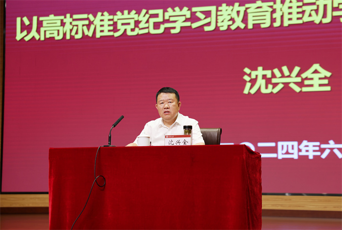 为深入学习贯彻习近平总书记关于党纪学习教育的重要讲话和重要指示精神,落实校党委关于党纪学习教育的相关要求,6月27日下午,校党委书记沈兴全在明向校区学生活动中心为机关全体干部及所联系党支部全体党员讲授专题党课。