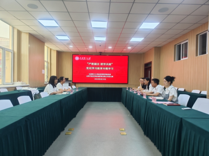 6月18日上午,经济管理学院与中通快递集团山西管理中心共同举办了“产教融合 党组联学”党纪学习教育专题学习活动。本次活动在推动校企合作、深化产教融合和深入开展党纪学习教育的大背景下,旨在通过校企双方的深入交流,加强党纪学习教育,推动产教融合向纵深发展。
